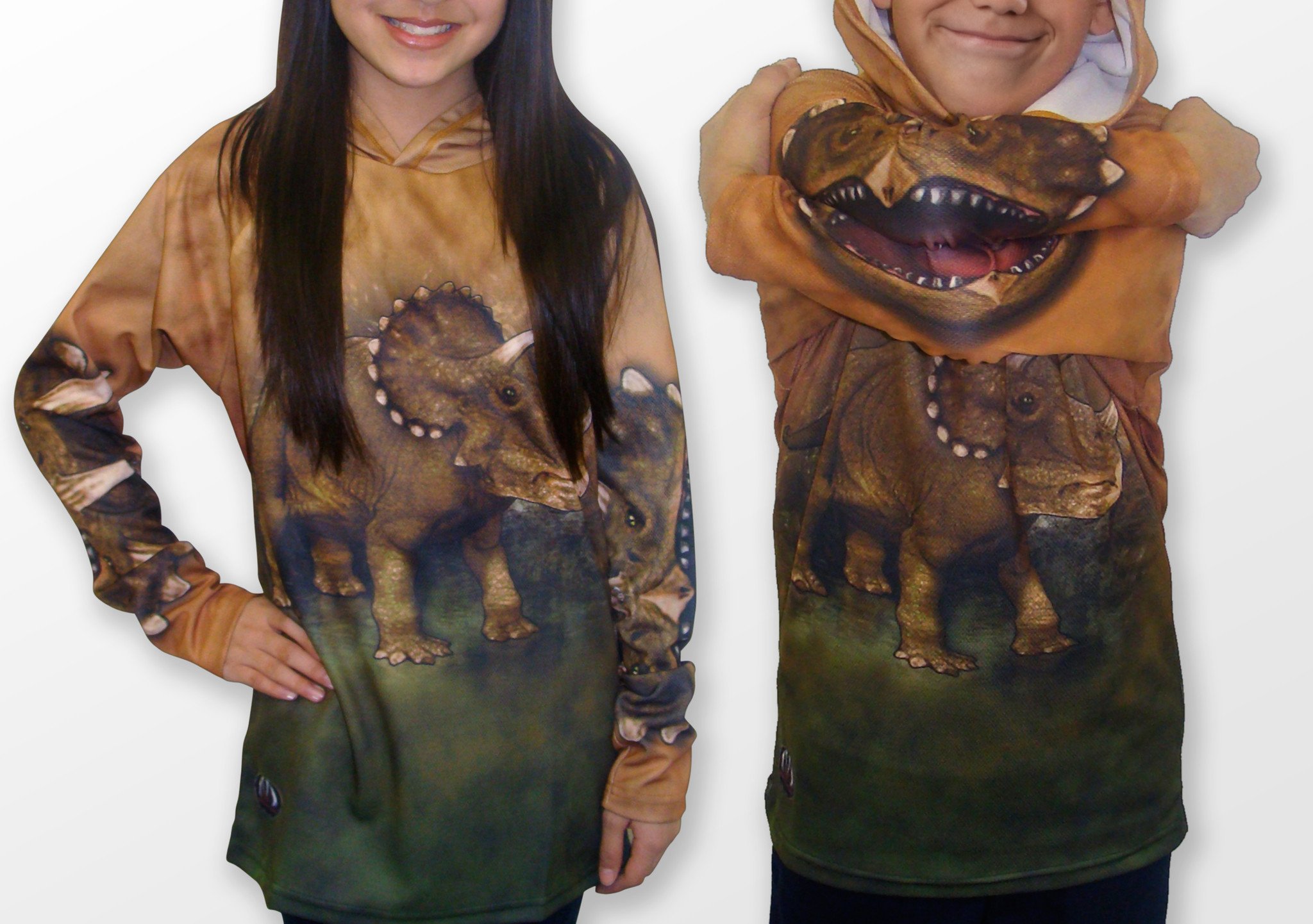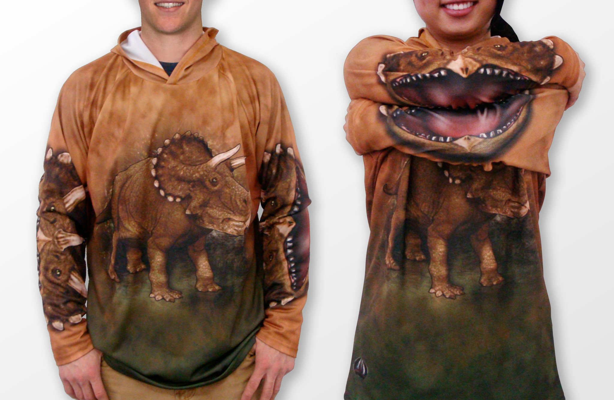 At MOUTHMAN®, we believe in sustainability. That's why the TRICERATOPS Hoodie Sport Shirt is made from recycled PET plastic bottles, contributing to a cleaner environment while providing you with a high-quality product. Our dye sublimation process uses eco-friendly, water-based, and chemical-free inks, ensuring that your shirt is not only vibrant and bold but also safe for the planet.