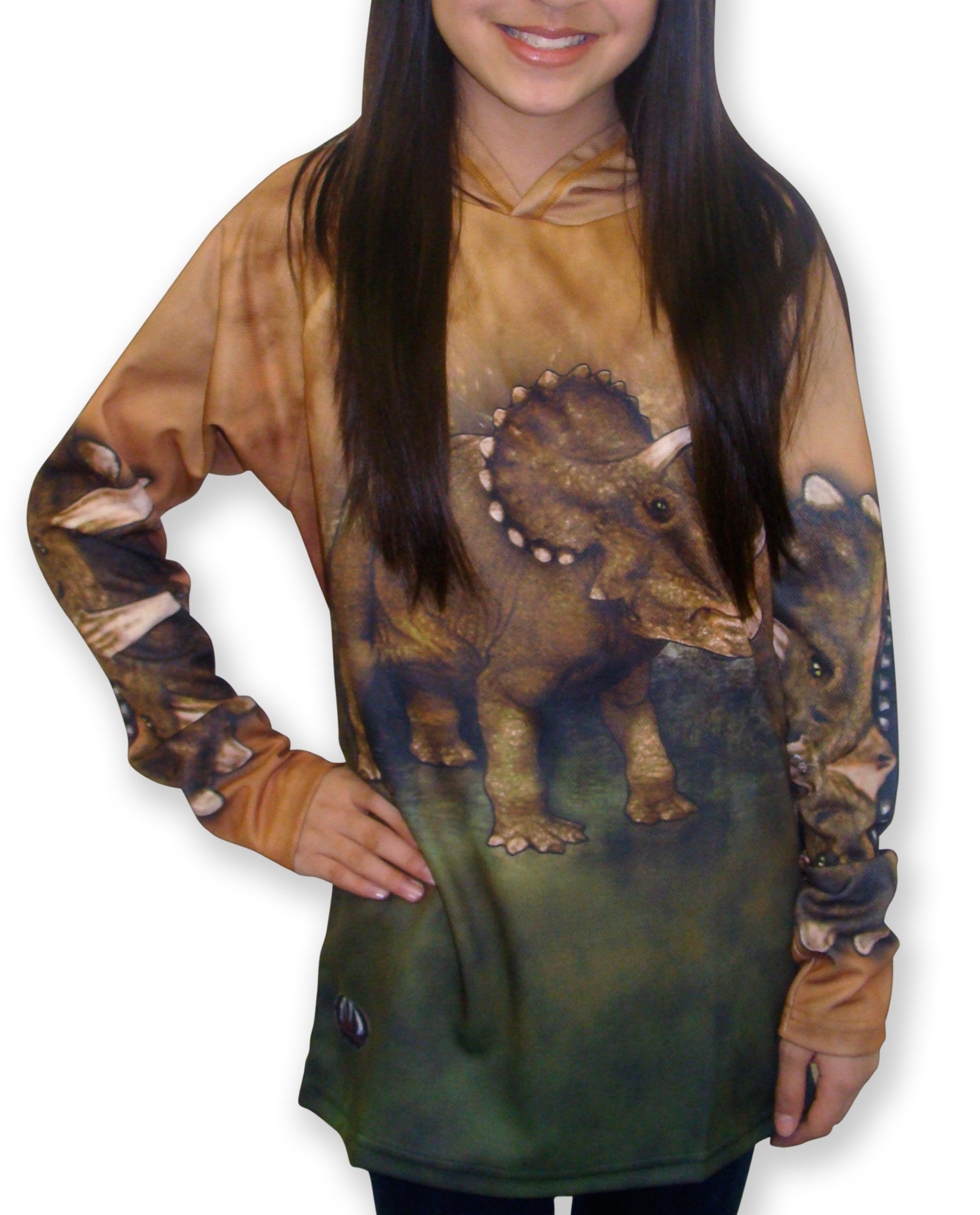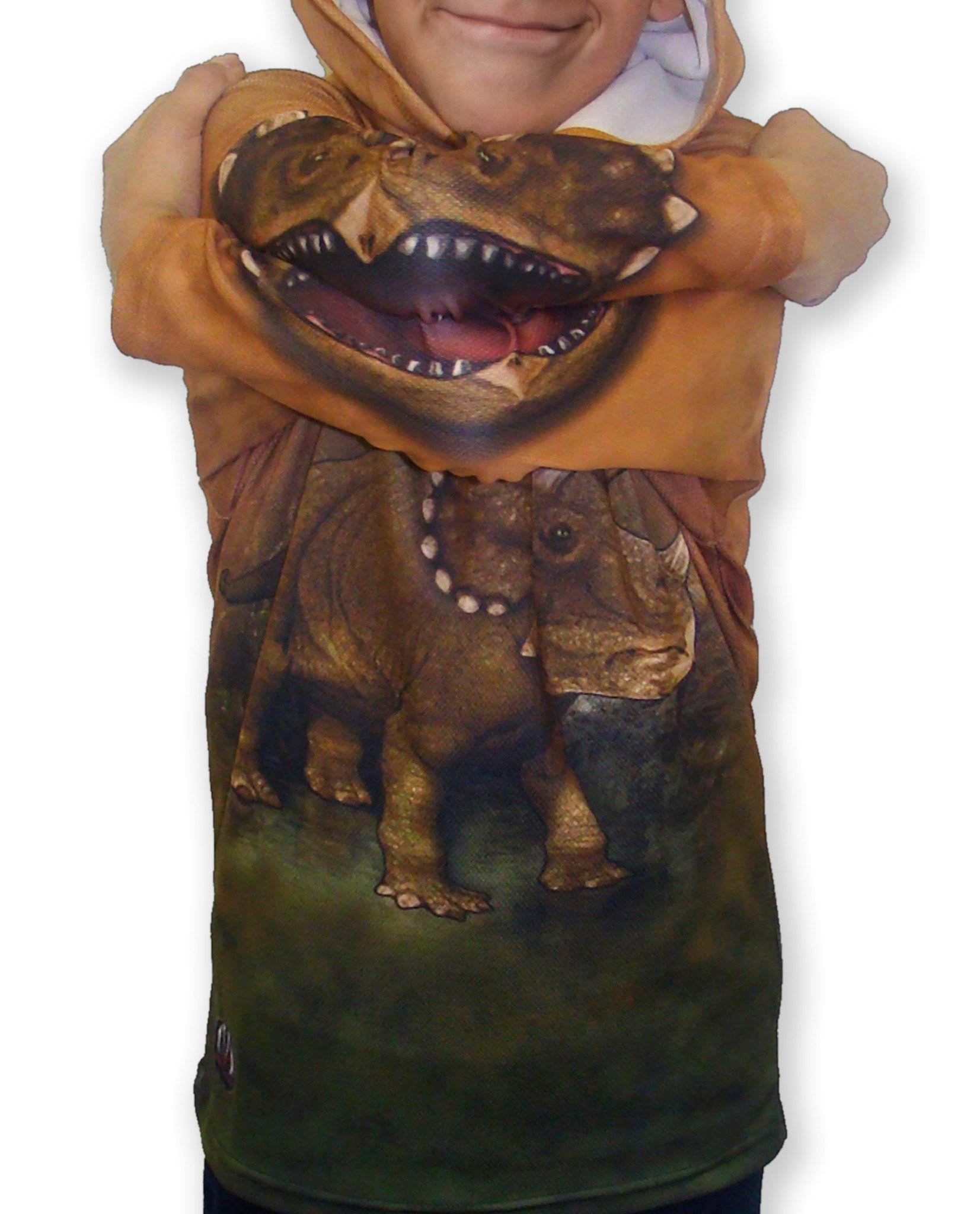 In summary, the TRICERATOPS Hoodie Sport Shirt by MOUTHMAN® is more than just a piece of clothing; it's a statement of fun, creativity, and environmental consciousness. Whether you're a dinosaur enthusiast, a music lover, or someone who simply enjoys unique fashion, this hoodie is the perfect addition to your wardrobe. Experience the blend of comfort, style, and sustainability with MOUTHMAN® today!