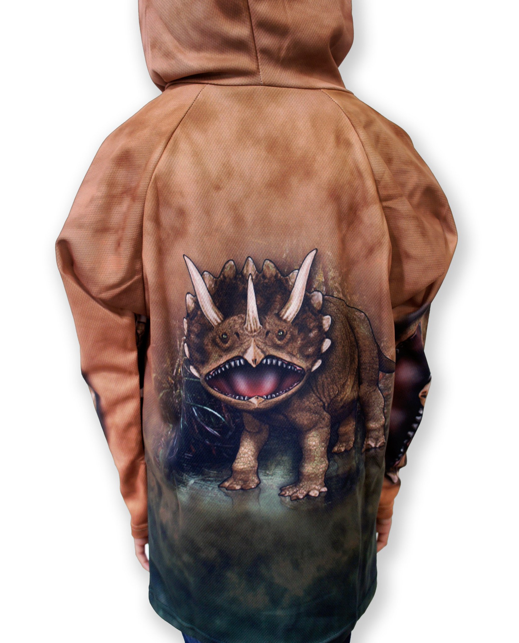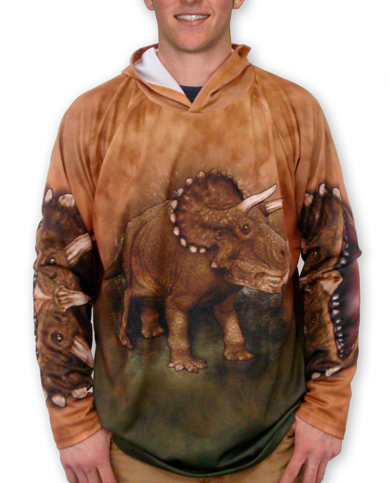 The TRICERATOPS Hoodie Sport Shirt is crafted from high-quality 100% polyester sport jersey mesh fabric, ensuring that you stay comfortable and cool during any activity. The lightweight and moisture-wicking properties of the fabric make it ideal for outdoor adventures, whether you're hitting the beach, going for a run, or enjoying a sunny day at the park. With UPF50+ protection, you can enjoy your time in the sun without worrying about harmful UV rays.