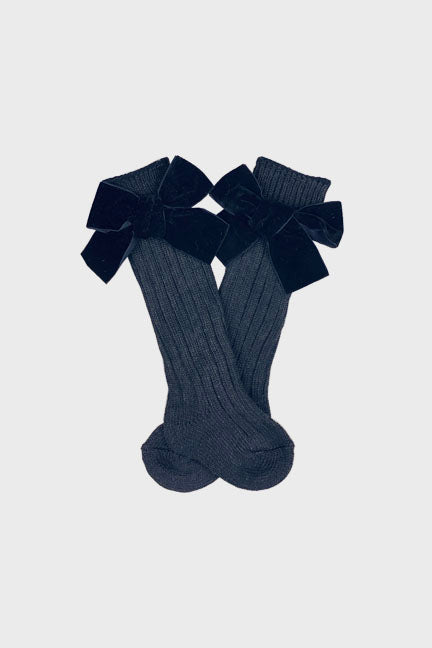 Our velvet bow knee high socks come in two sizes to fit your growing child: