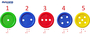 Stringing game, big buttons with 1 to 5 holes and in bright colours. For serialisation and classification. They stimulate the childs metrical abilities. FEATURES: They include the graph of the number in relief and its Braille representation. The set is completed with individual activity worksheets and 10 1 metre long cords. WARNING: Choking Hazard.