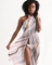 The unique pink and white marble swirl style of this cover up is eye-catching and trendy. The artistic design is perfect for those who want to make a statement while enjoying their time in the sun. The blend of colors creates a soft and elegant look that complements a variety of swimwear styles.