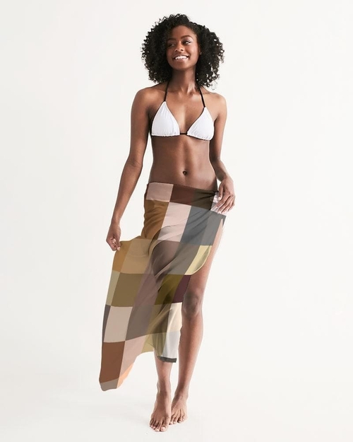 Introducing our Sheer Sarong Swimsuit Cover Up Wrap in a beautiful brown colorblock multicolor design, the ultimate accessory for your beach or poolside outings. This cover-up is not just a piece of clothing; it’s a statement of style and comfort. Made from lightweight and flowy fabric, it drapes elegantly over your swimwear, providing just the right amount of coverage while allowing you to stay cool and comfortable under the sun.