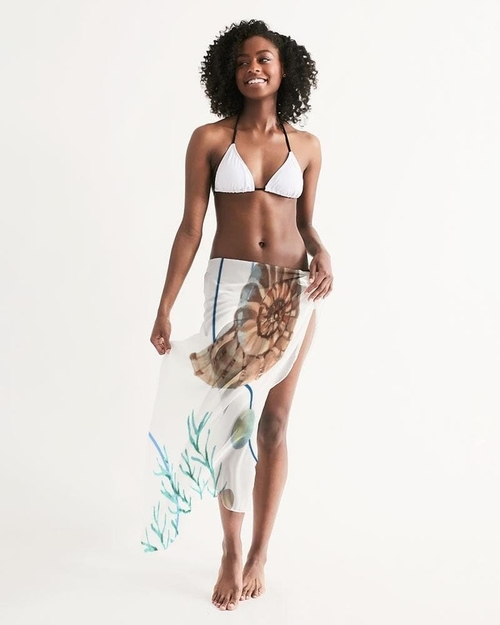 Introducing our Sheer Sarong Swimsuit Cover Up Wrap in a beautiful White Seashell design, the ultimate accessory for your beach or poolside adventures. This cover-up is not just a stylish addition to your swimwear; it is designed to provide comfort and versatility, making it a must-have for any summer wardrobe.