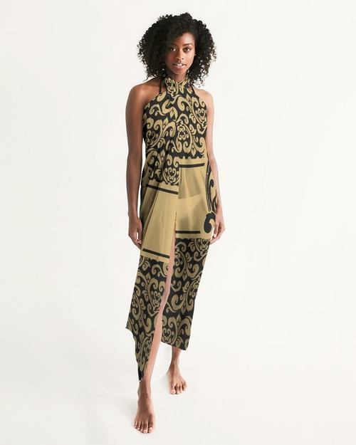 Introducing our Sheer Swimsuit Cover Up in an eye-catching black and gold abstract print, designed to elevate your beach or poolside experience. This stunning cover-up is not just a fashion statement; it’s a versatile accessory that complements any swimwear ensemble. Whether you’re lounging by the pool, taking a stroll on the beach, or enjoying a sunny day at a resort, this cover-up is the perfect addition to your summer wardrobe.