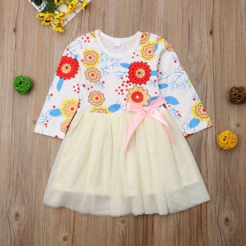 Dropship 2018 Little Girls Sunflower Patch Dress Baby Kid