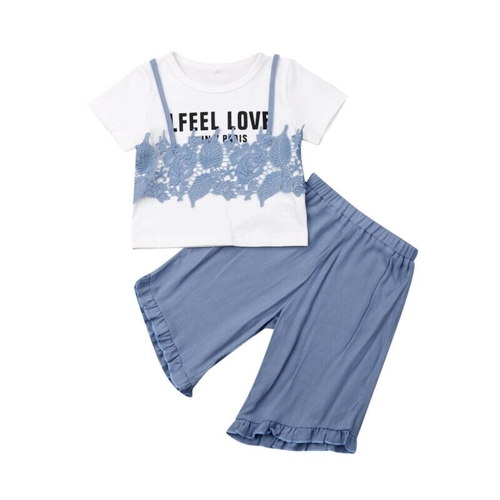 Style: Streetwear Sleeve Length(cm): Short Pattern Type: Print Collar: O-Neck Sleeve Style: REGULAR Department Name: Children Item Type: Sets Material: COTTON Material: Polyester Gender: Girls