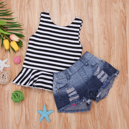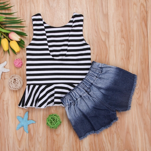 Model Number: 2Pcs Toddler Baby Kids Girls Outfits Summer Stripe Tops