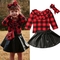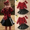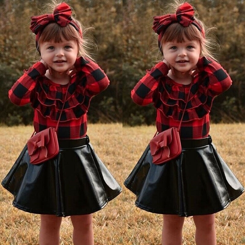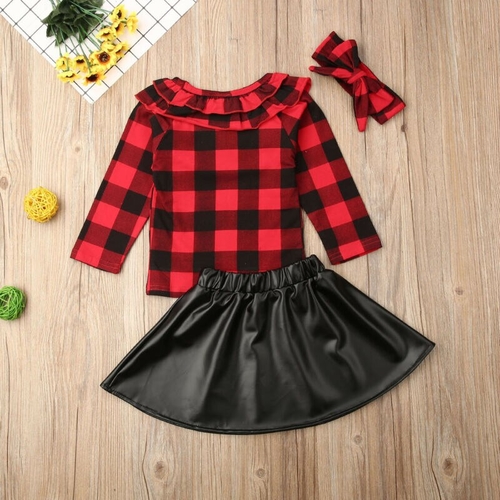 3PCS Kids Baby Girls Outfits Plaid T Shirt Tops+PU