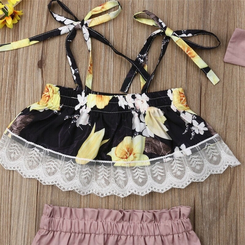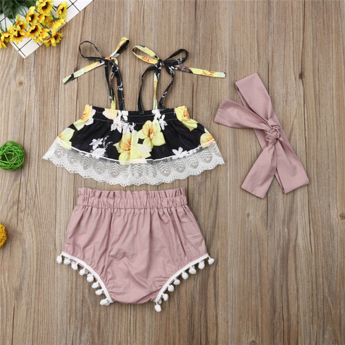Dropship 3PCS Newborn Baby Girl Summer Clothes Flower Lace