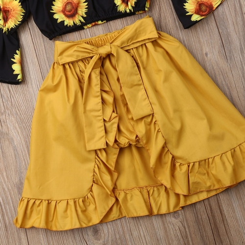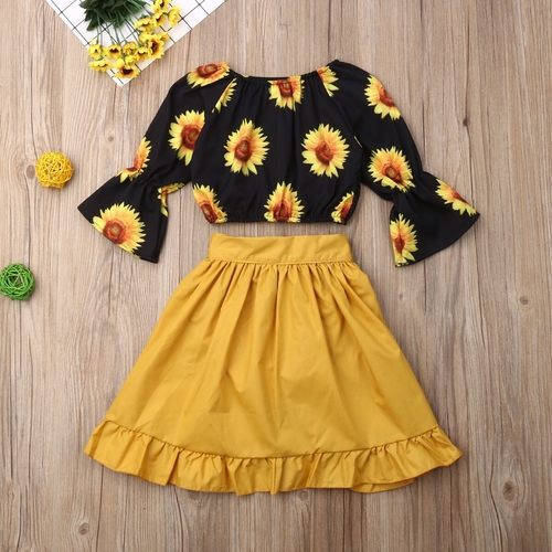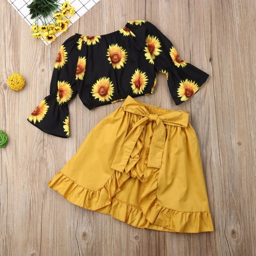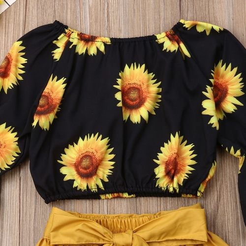 Style: Fashion Sleeve Length(cm): Full Pattern Type: Floral Collar: O-Neck Sleeve Style: Flare Sleeve Fit: Fits true to size, take your normal size Closure Type: Pullover Model Number: girls sets Material: COTTON Gender: Girls