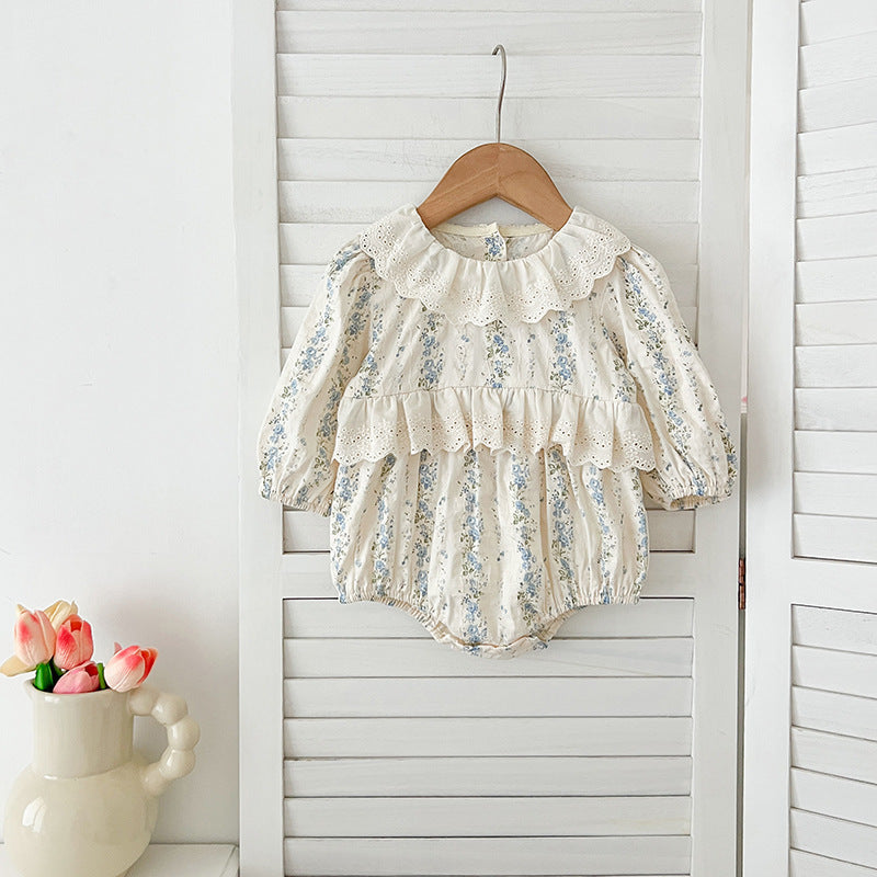 A cute blue floral patterned long sleeve top for baby girls, perfect for autumn and spring wear.
