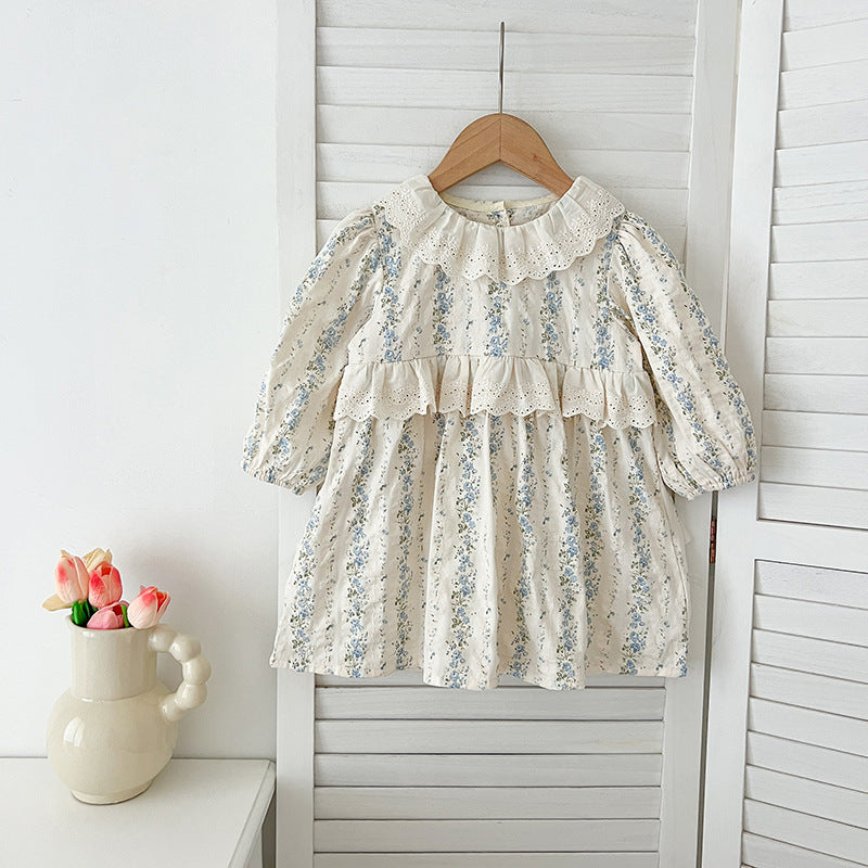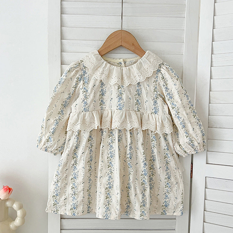 Dropship Arrival Autumn Baby Kids Girls Long Sleeves Blue Floral Pattern