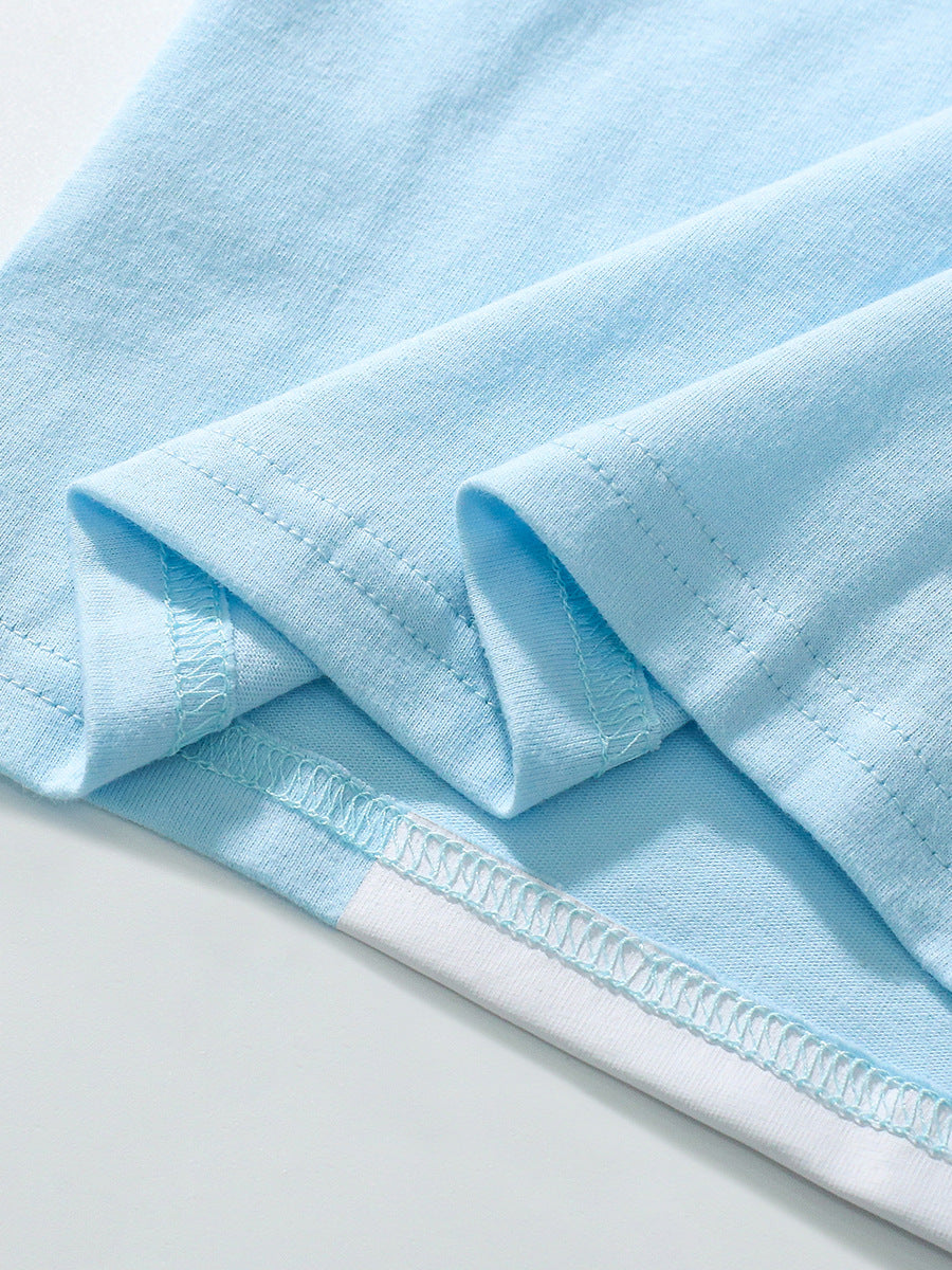 This t-shirt comes in a vibrant blue color that is sure to brighten up any outfit. The cotton material is not only soft against the skin but also durable, ensuring that it withstands the wear and tear of active play. Parents can rest assured that this t-shirt will keep their child comfortable throughout the day.