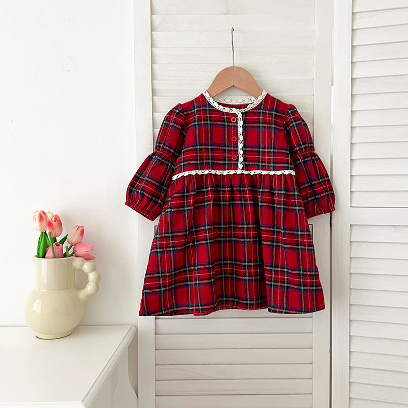 Introducing the Arrival Autumn Vintage English Plaid Baby Kids Girls Ruffle Neck dress, a charming addition to your little girl's wardrobe. This delightful dress combines vintage style with modern comfort, making it an ideal choice for both casual outings and special occasions. Crafted from high-quality cotton, it ensures that your child stays comfortable while looking adorable.