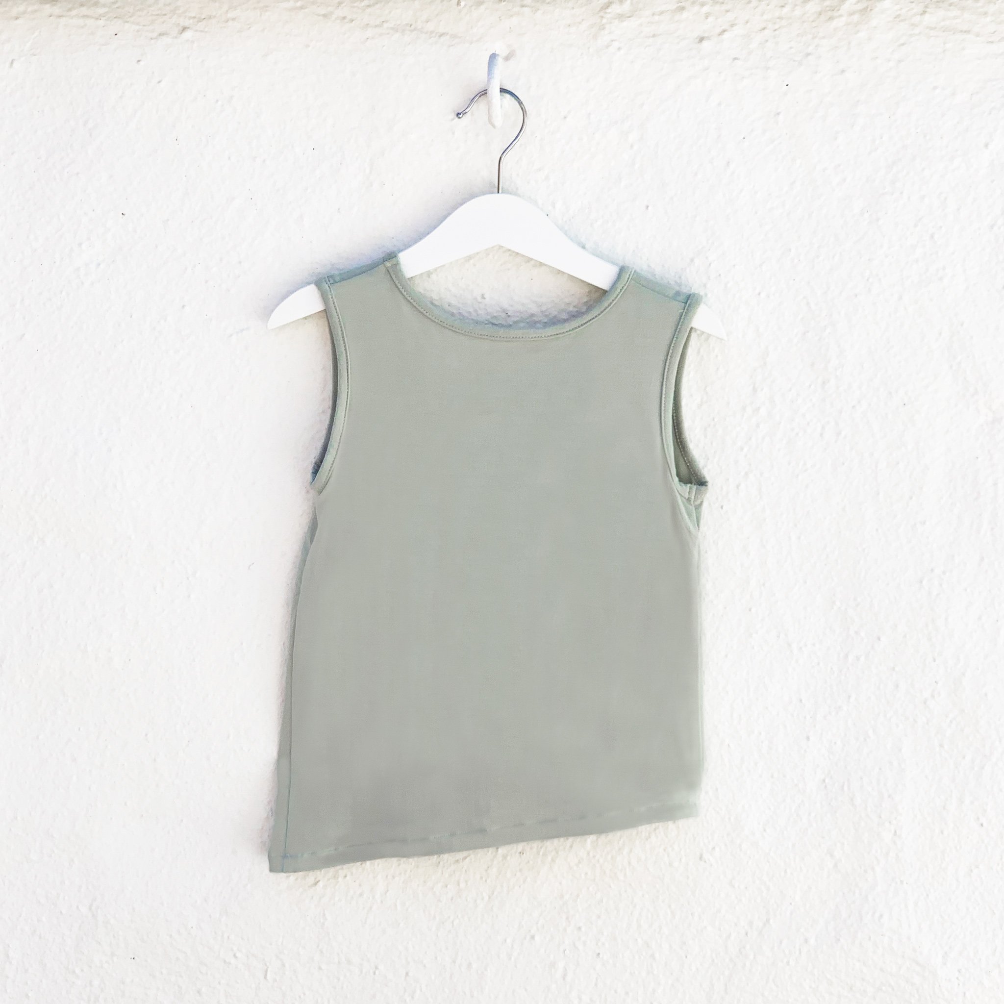 Introducing the Asymmetric Tank in Desert Sage, a stylish and versatile addition to your wardrobe. This tank top is designed with a unique asymmetric bottom hem that adds a modern twist to a classic silhouette. Perfect for layering or wearing on its own, this tank is suitable for any occasion, whether you're heading to the gym, running errands, or enjoying a casual day out.