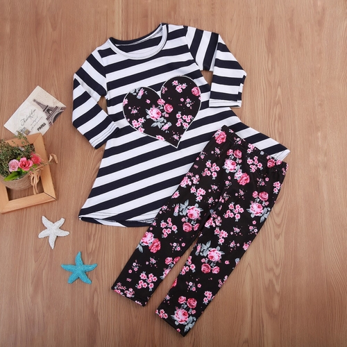 Material: COTTON Gender: Girls Style: Novelty Sleeve Length(cm): Full Closure Type: Pullover Pattern Type: Floral Sleeve Style: REGULAR Collar: O-Neck Fit: Fits true to size, take your normal size Department Name: Children Item Type: Sets
