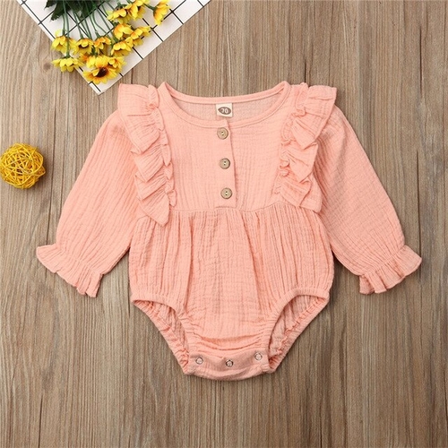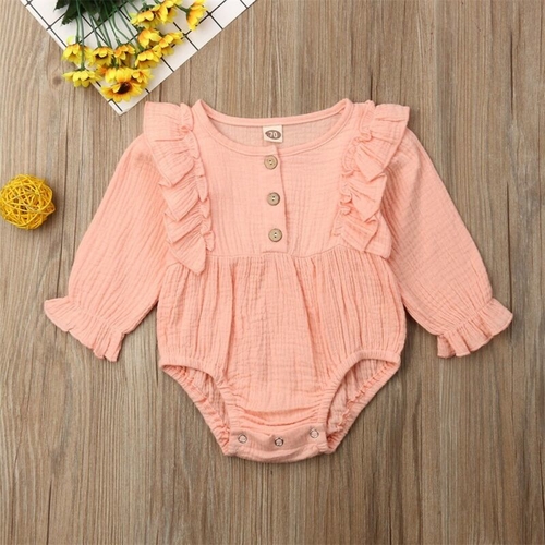 Dropship Autumn Newborn Baby Girl Solid Plain Romper