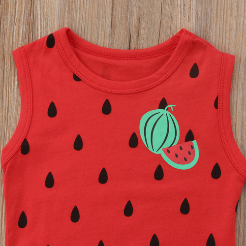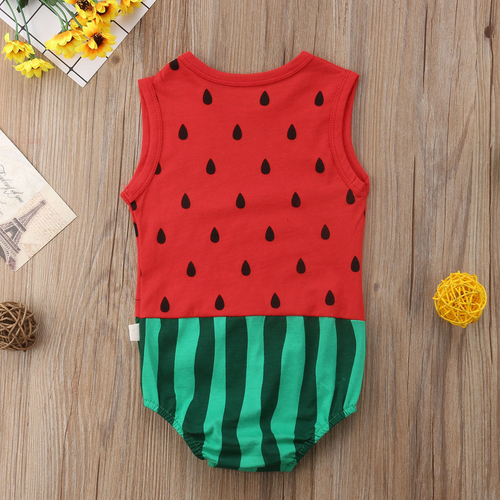 Model Number: watermelon Material: COTTON Gender: Baby Girls Style: Fashion Sleeve Length(cm): Sleeveless Pattern Type: Cartoon Collar: O-Neck Fit: Fits true to size, take your normal size Department Name: Baby Item Type: Bodysuits