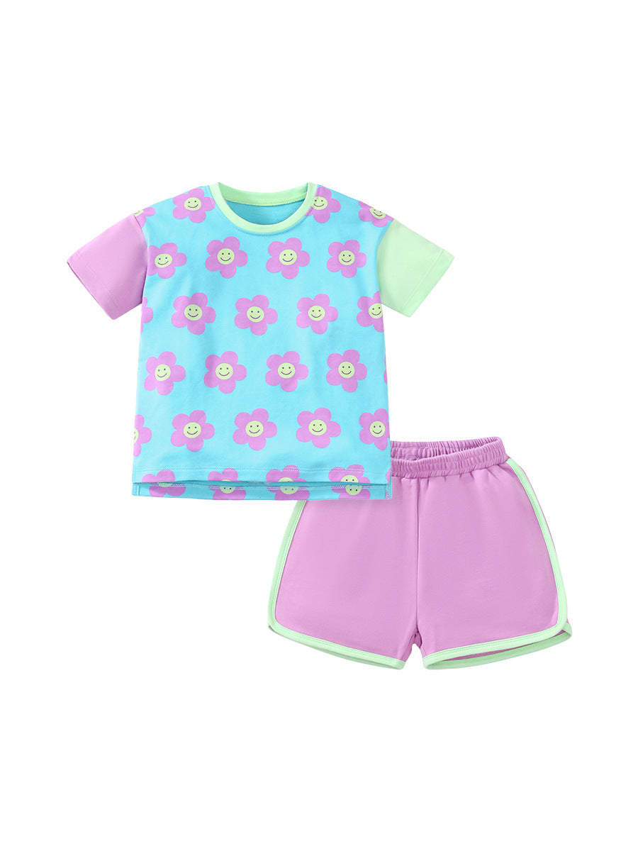 Introducing our Baby and Kids Girls Floral Cartoon Top and Shorts, a delightful addition to your little one's wardrobe. This charming outfit is designed for comfort and style, making it perfect for casual home wear during the warm summer months. Crafted from high-quality cotton, it ensures your child stays cool and comfortable while looking adorable.