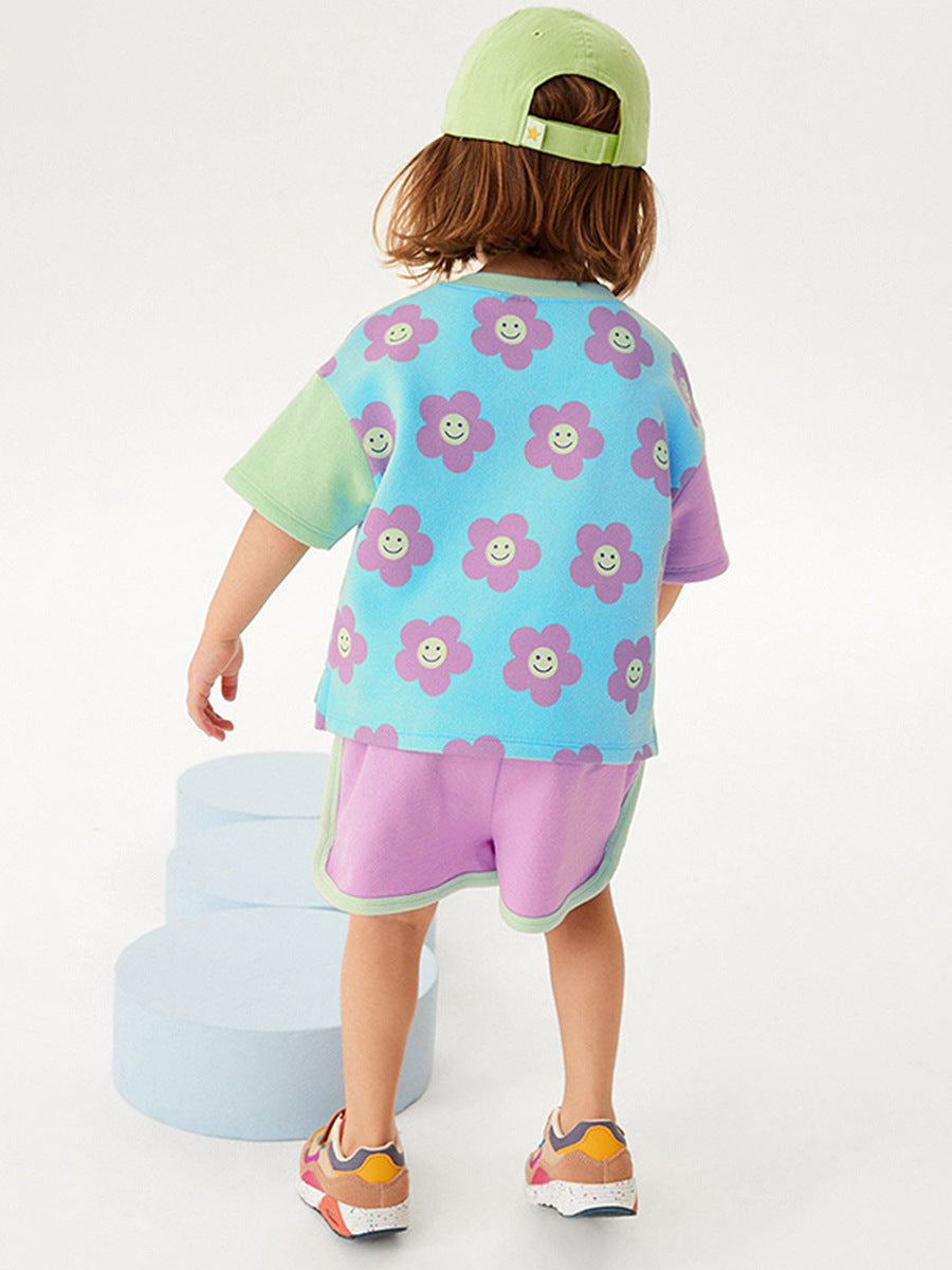 The standout feature of this outfit is its vibrant floral and cartoon patterns. The playful designs are sure to capture the hearts of both parents and children alike. The floral print adds a touch of nature's beauty, while the cartoon elements bring a fun and whimsical vibe, making it an ideal choice for playful days at home or outings.