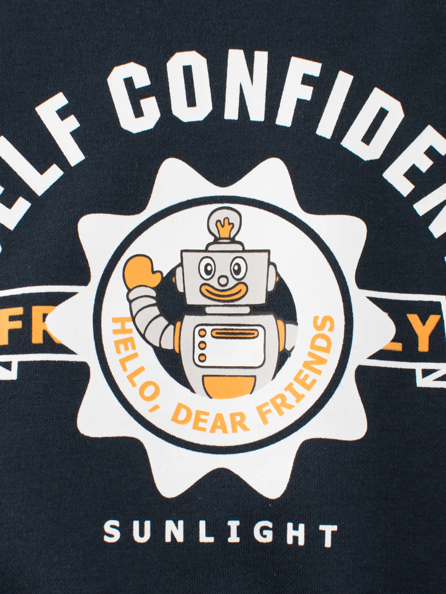 Baby boy's navy blue crew neck long sleeve shirt with letters pattern, made from soft cotton blend material.