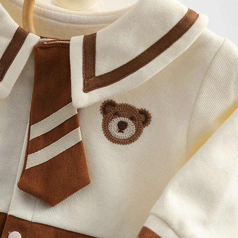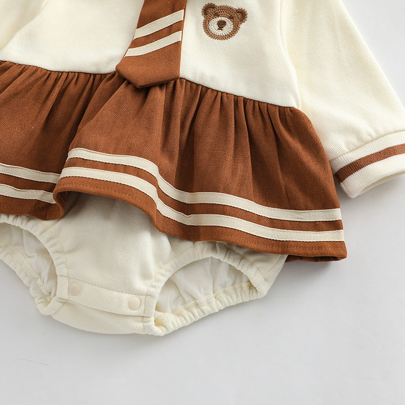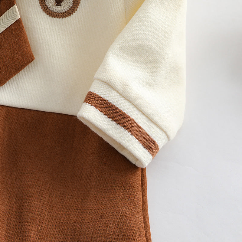 Introducing the Baby Girl Cartoon Bear Embroidered Pattern College Style Kids outfit, a delightful addition to your child's wardrobe. This charming piece is designed with exclusive craftsmanship, ensuring that your little one stands out on any occasion. The intricate embroidered bear pattern adds a playful touch, making it perfect for fashion-forward youngsters. Crafted from high-quality cotton, this outfit is not only stylish but also comfortable, allowing your child to move freely and enjoy their day.