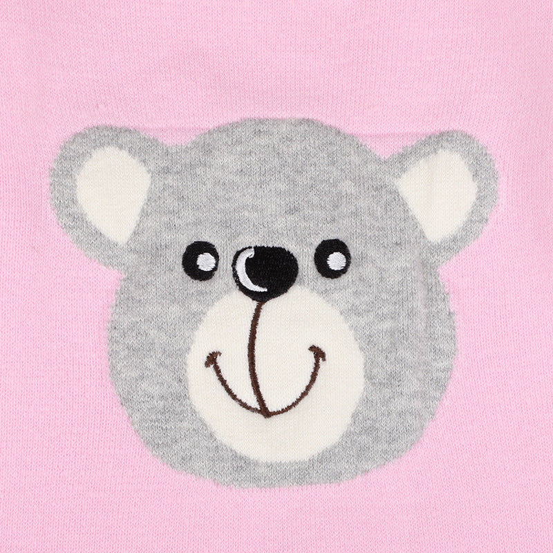 Introducing our Baby Girl Cartoon Bear Graphic Long Sleeves Knit Thermal Jumpsuit, a delightful addition to your little one's wardrobe. Crafted from soft and breathable thermal cotton material, this jumpsuit ensures maximum comfort for your baby girl. The adorable cartoon bear graphics add a playful touch, making it perfect for any occasion, whether it's playtime at home or a family outing.