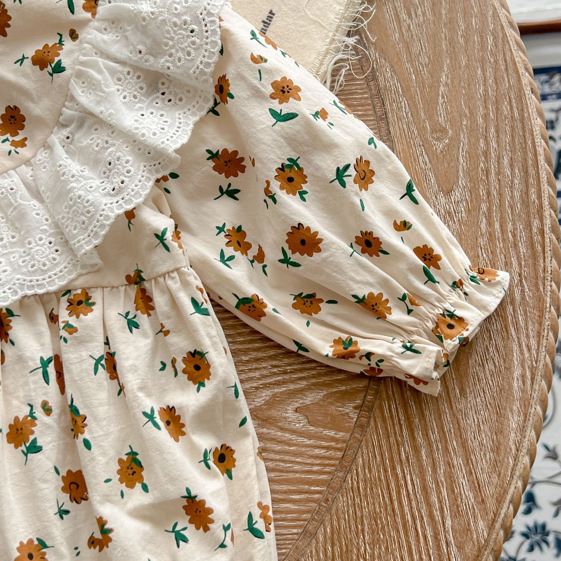 The standout feature of this bodysuit is its beautiful ditsy floral pattern, which adds a touch of whimsy and charm. The lace decoration enhances the overall aesthetic, making it perfect for special occasions or everyday wear. The long sleeves provide added warmth during cooler days, making it suitable for both spring and autumn seasons.