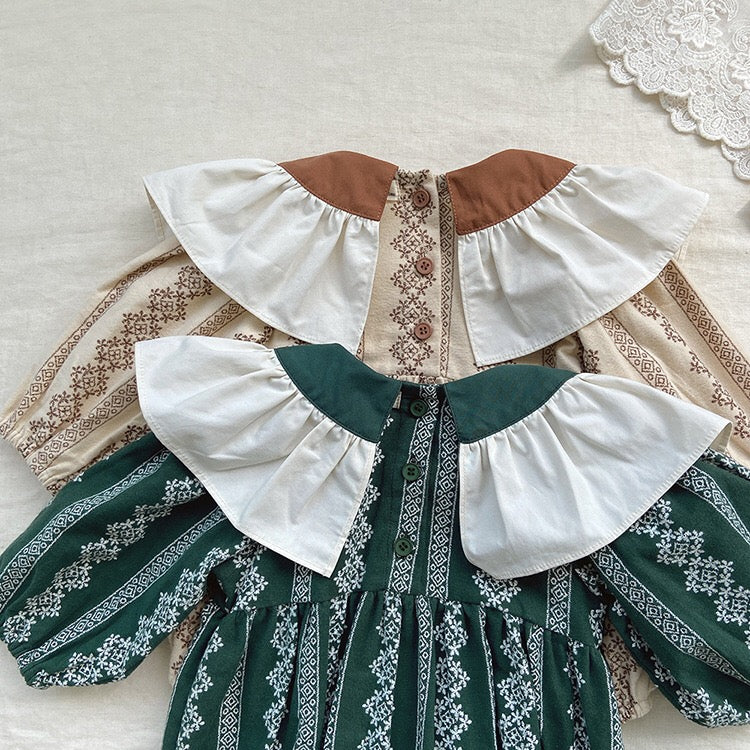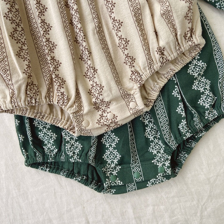 This adorable onesie comes in two beautiful colors: green and apricot. Both colors are perfect for spring and autumn, allowing your little one to shine in any setting. The floral pattern beautifully complements both shades, making it a versatile addition to your baby girl's wardrobe.