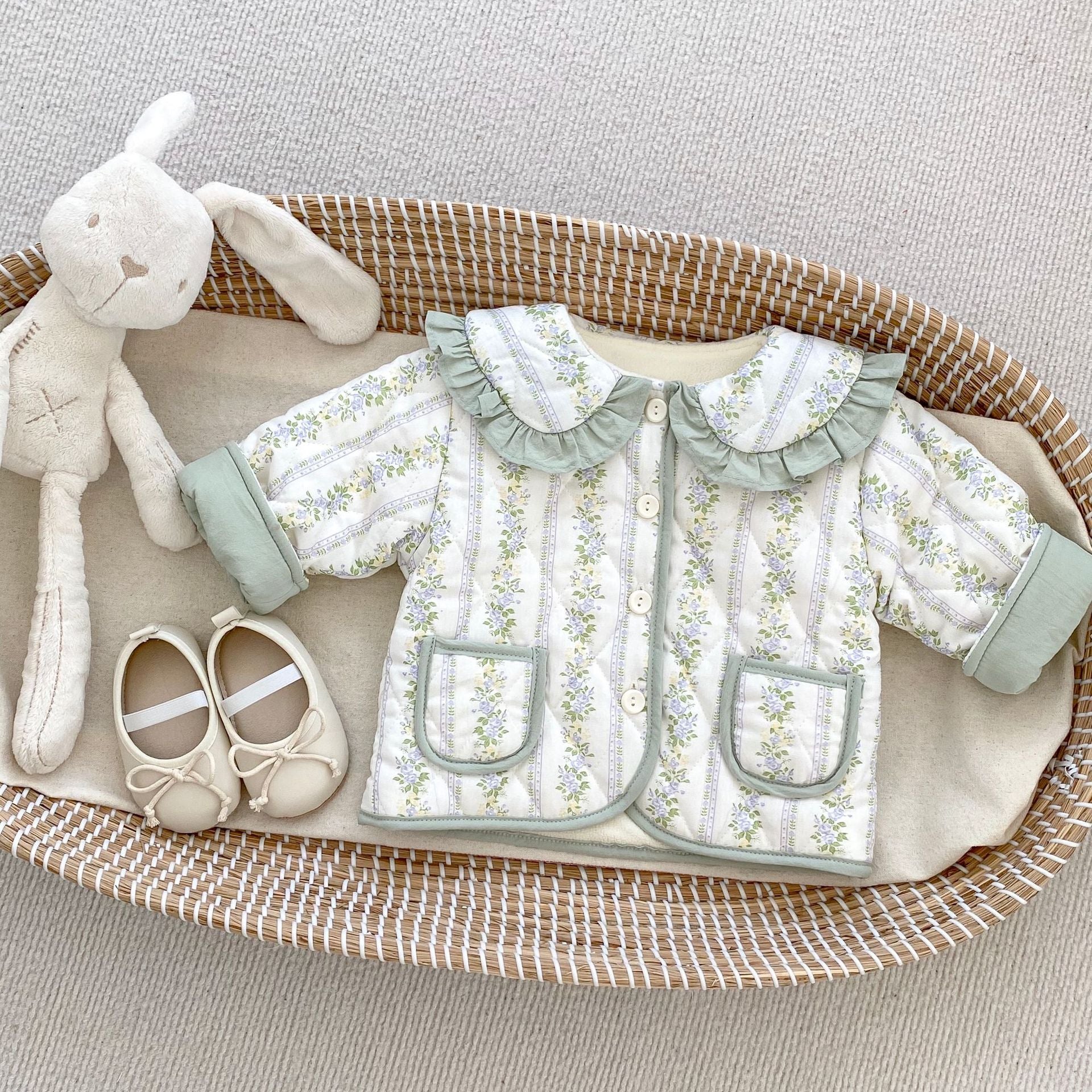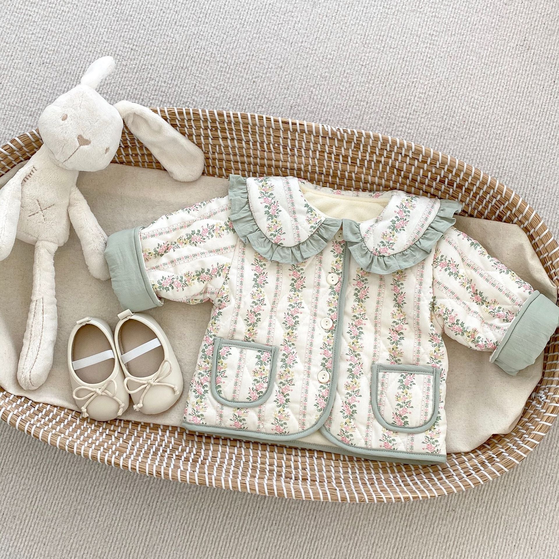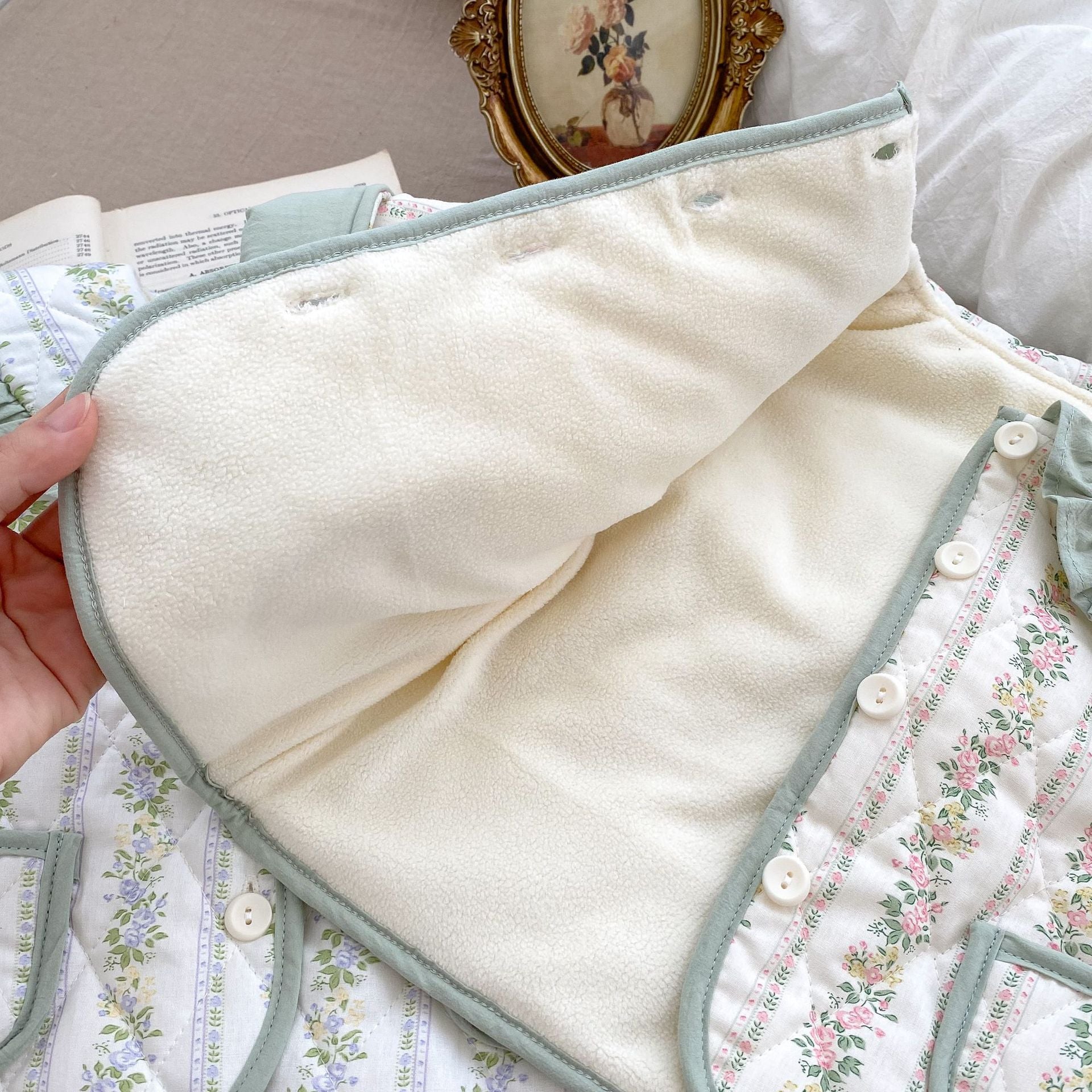 Crafted with thickened fabric, this cardigan offers exceptional warmth, making it ideal for winter wear. The long sleeves provide additional coverage, ensuring that your baby girl stays snug and comfortable even on the coldest days. The soft cotton and plush material are gentle on the skin, preventing any irritation and allowing for all-day wear.