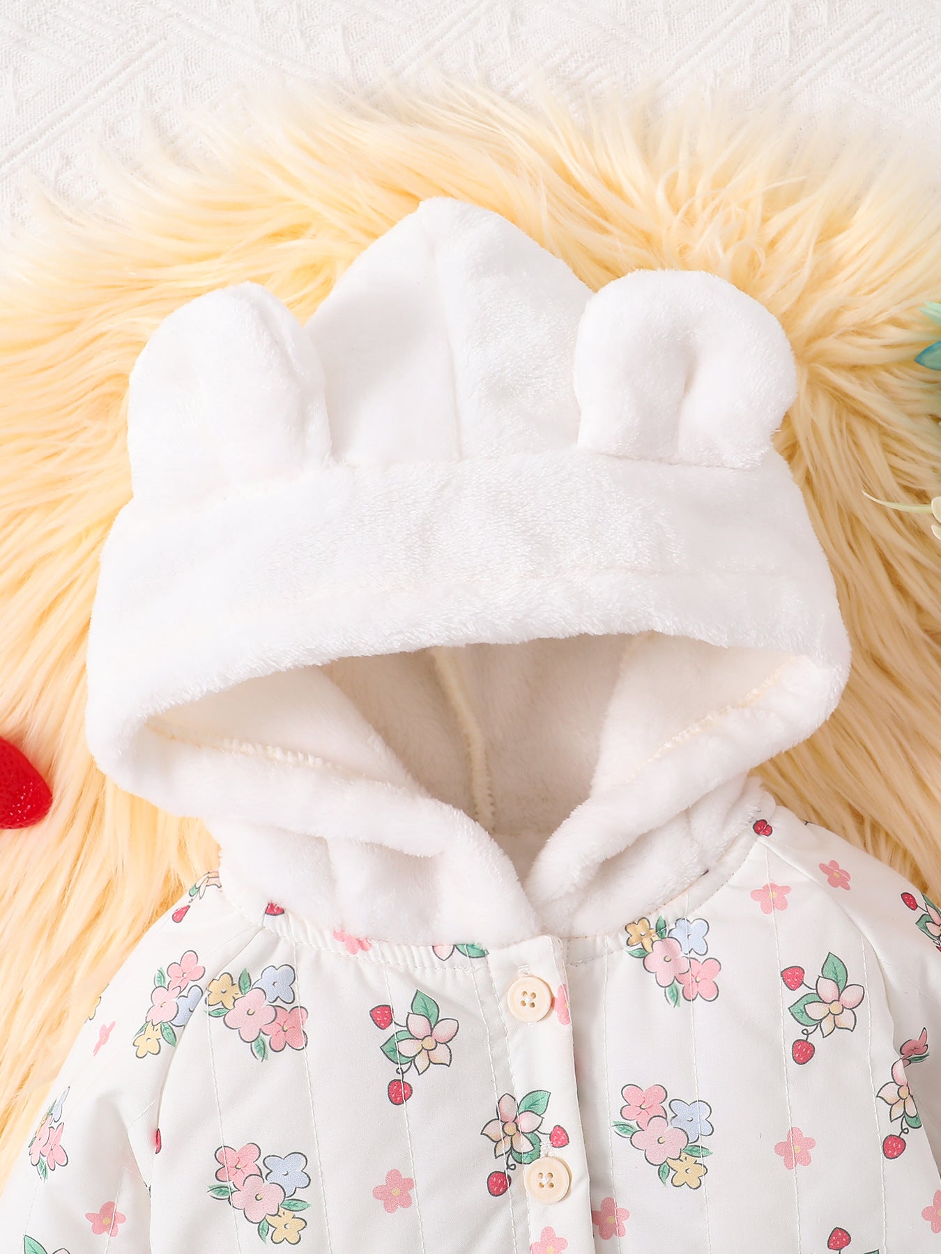 Introducing our adorable Baby Girls Floral White Rabbit Hoodie, a must-have coat for your little one this winter. This charming hoodie features a delightful floral pattern combined with a cute white rabbit design, making it a perfect choice for stylish baby girls. Crafted from high-quality polyester, this coat ensures warmth and comfort, allowing your baby to play freely while staying cozy.