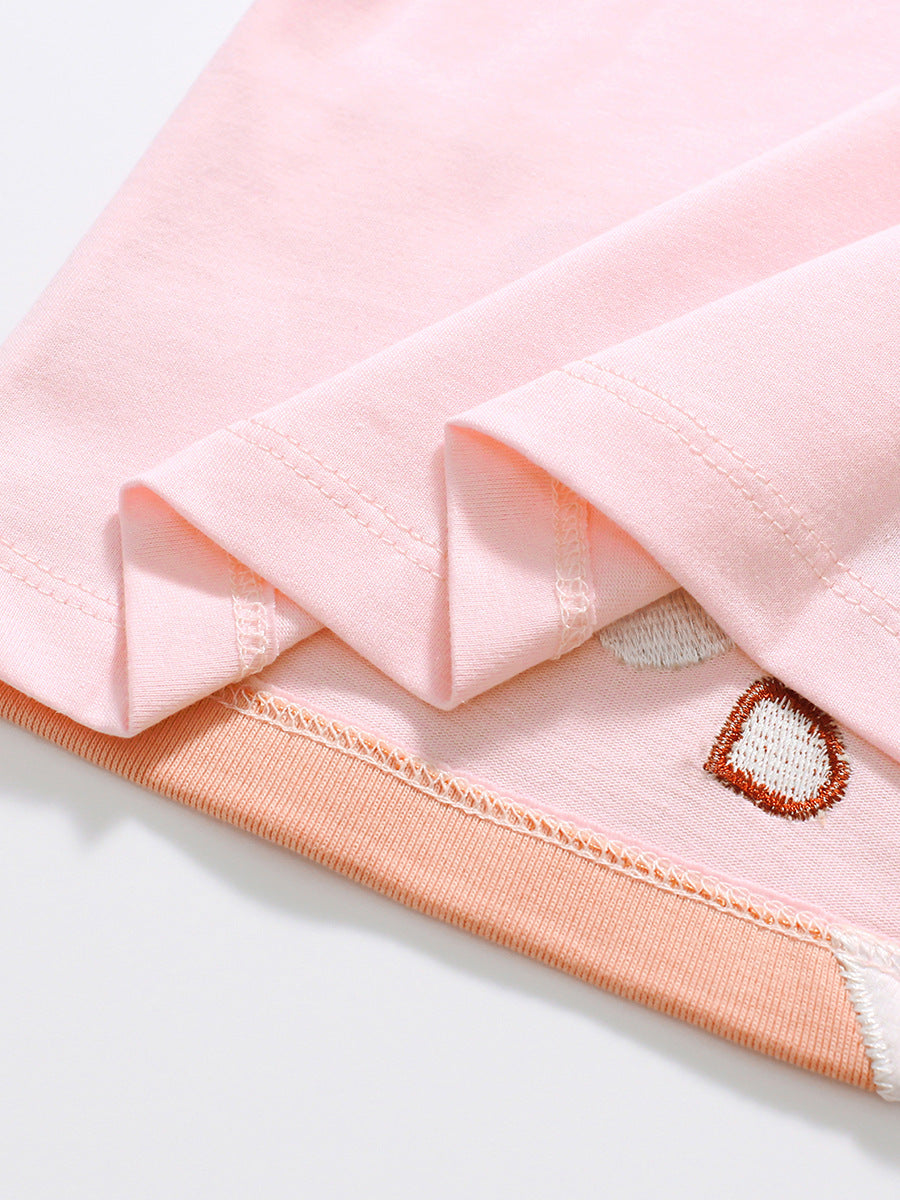Baby Girls Kids Deer Cartoon Embroidery Long Sleeve Top Pullover in pink with cute deer design.