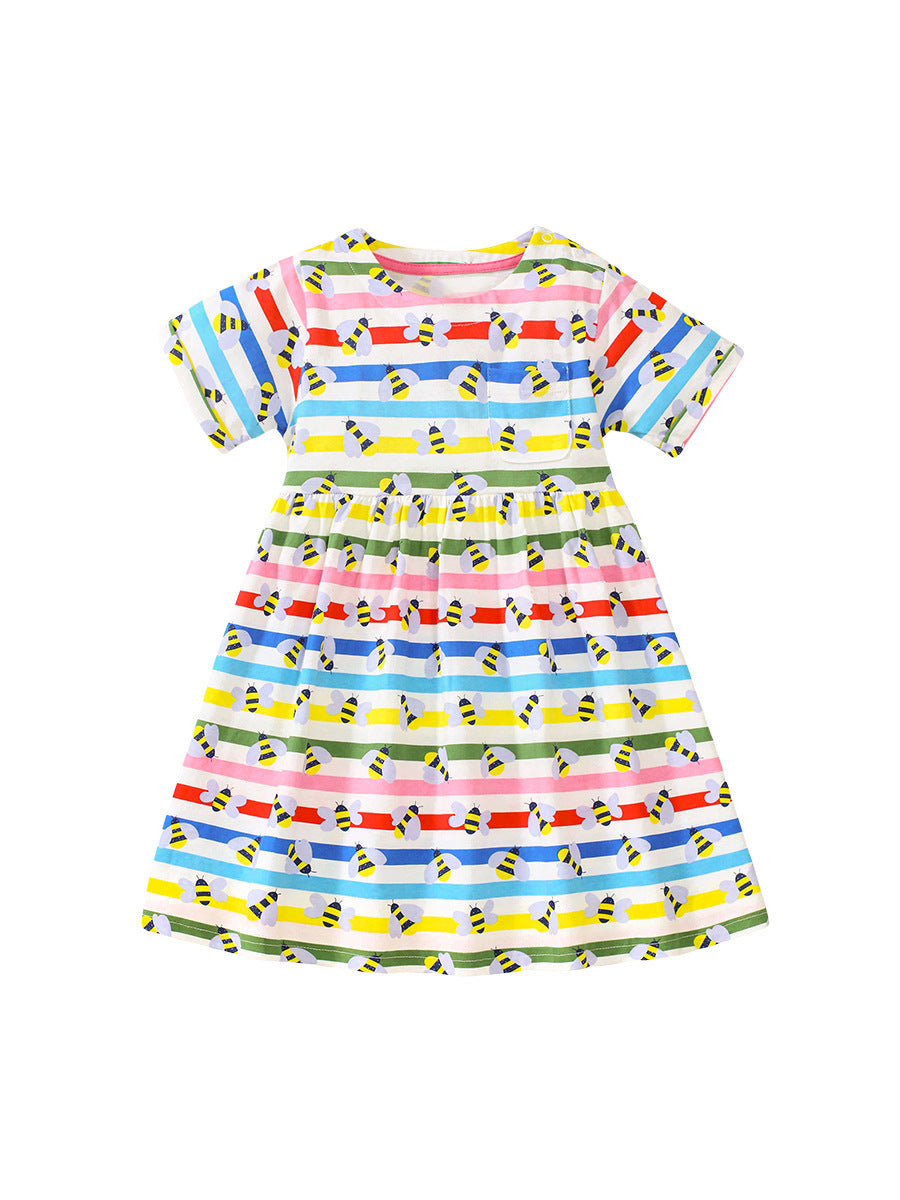 In summary, the Baby Girls Rainbow Striped Short Sleeves Bees Pattern Dress is a must-have for any little girl's summer wardrobe. With its eye-catching design, comfortable material, and practical sizing options, it is sure to become a favorite for both parents and children.