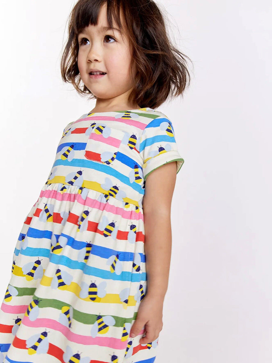 The adorable bees pattern adds a playful touch to the dress, making it a favorite among little girls. This unique design not only enhances the overall look but also sparks joy and imagination in your child's playtime.