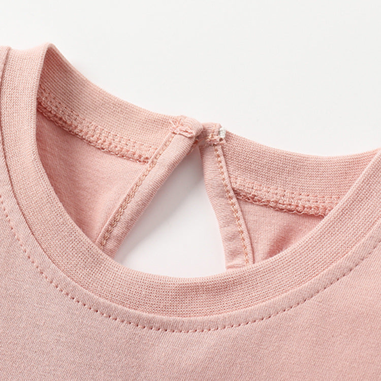 This outfit is specifically designed for the spring and summer seasons, making it a great addition to your child's warm-weather wardrobe. The short sleeves and lightweight fabric provide breathability, ensuring that your little girl stays comfortable while playing outdoors or attending summer events.