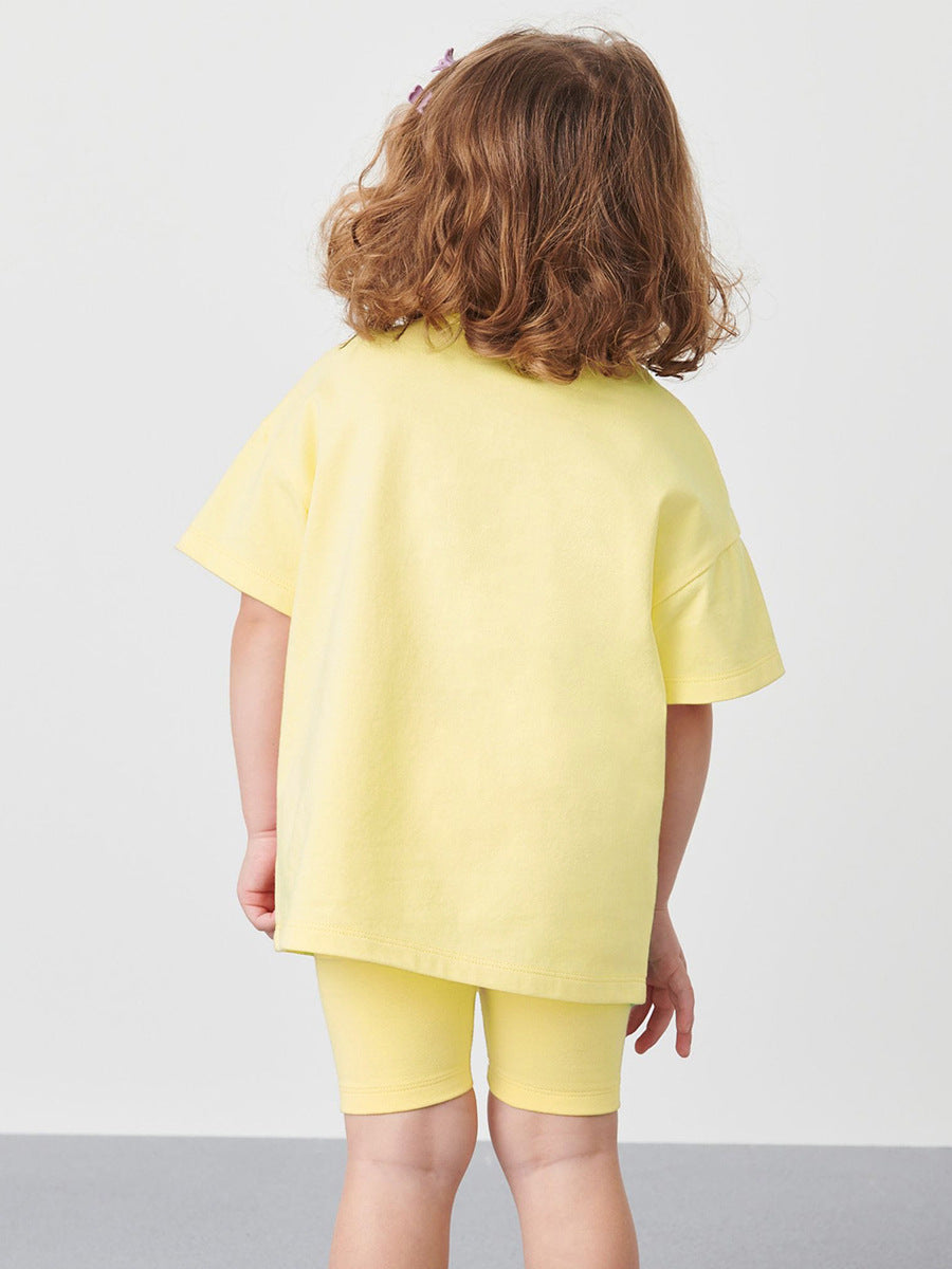 Introducing our delightful Baby Kids Girls Fruits And Animal Cartoon Print Top And Shorts Casual set, designed to bring joy and comfort to your little one's summer wardrobe. This charming outfit features a vibrant yellow color that is perfect for sunny days, making it an ideal choice for casual outings, playdates, or family gatherings.