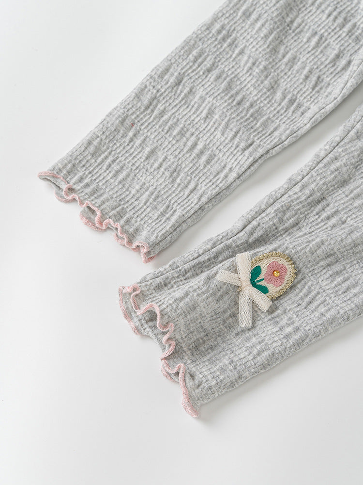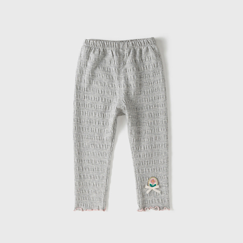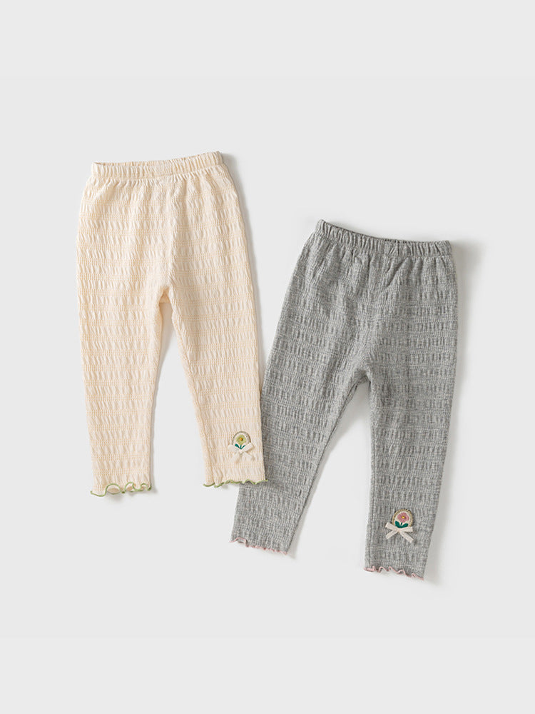 The standout feature of these pants is the charming embroidered flower logo, which adds a touch of whimsy and style. Available in two versatile colors, grey and beige, these pants can easily be paired with a variety of tops, making them a staple for any baby girl's wardrobe. Whether it's a playdate at the park or a family gathering, your little girl will look adorable and feel comfortable.