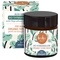 Packaging: glass jar (recyclable), recycled paper.