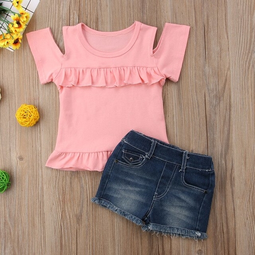 Model Number: Boutique Baby Girls Summer Outfits Tops Denim Shorts