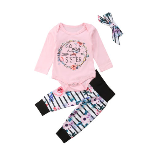 Model Number: Baby Girls Long Sleeve Letter Romper Long Pants Headband 3Pcs