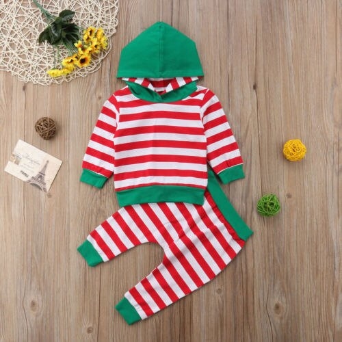 Model Number: Baby Boy Girl Striped Hooded Long Sleeve Top Pants 2Pcs