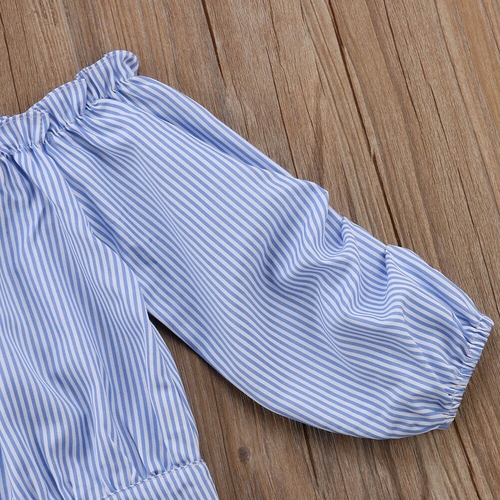 Model Number: Baby Kids Girls Striped Ruffles Off-Shoulder Tops
