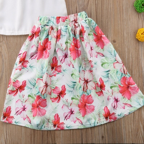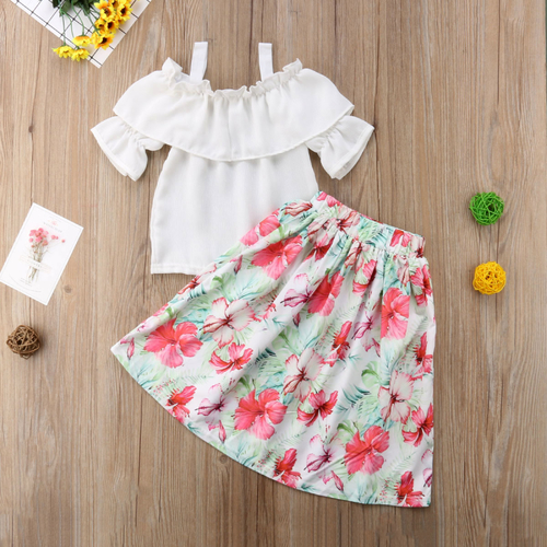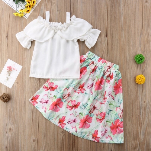 Model Number: Baby Girl Chiffon Off Shoulder Strap Top Floral Skirt 2Pcs