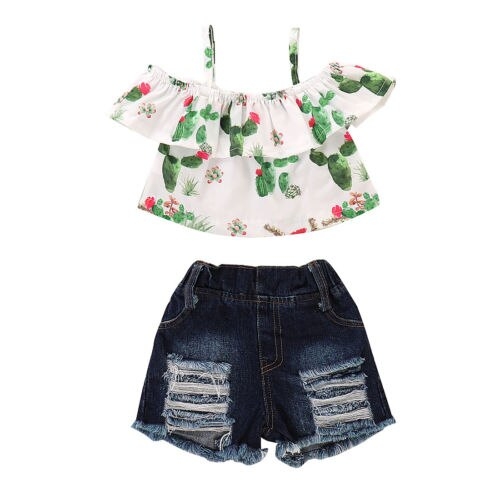Model Number: Baby Girl Cactus Off Shoulder Top Shorts 2Pcs