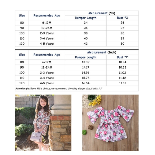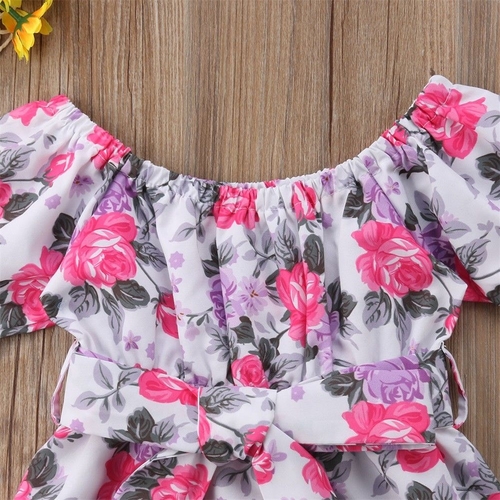 Model Number: Baby Girls Floral Flare Sleeve O-Neck Bow Belt Romper