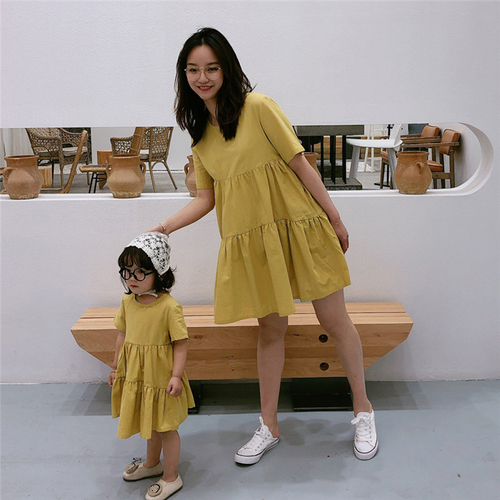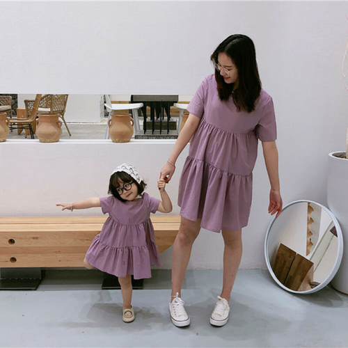 Item Type: Dresses Material: COTTON Pattern Type: Solid Style: Casual Sleeve Length(cm): Short Fit: Fits true to size, take your normal size Department Name: Mother & Daughter