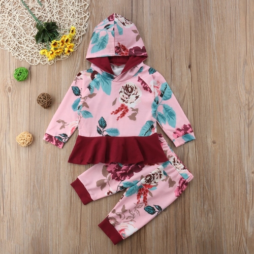 Model Number: Girls Floral Hooded Dress Tops Pants 2Pcs Outfits