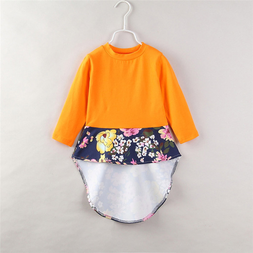 Model Number: Children Girl Long Sleeves Heart-Shaped Hole Printing Dovetail Skirt