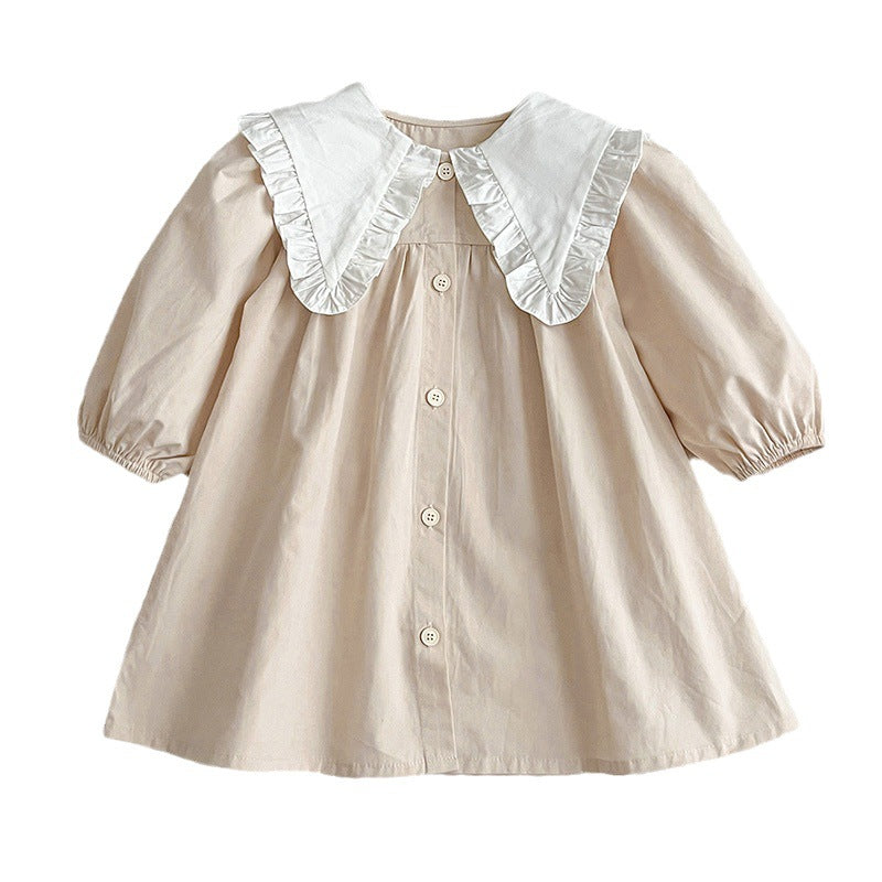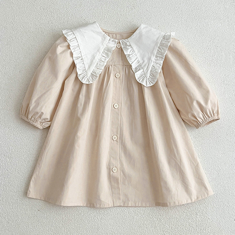 In summary, the College Style Big Collar Fashion Onesies & Dress is a must-have for any stylish young girl. With its comfortable cotton material, trendy design, and versatile color options, it is perfect for spring and autumn wear. Don't miss out on this fashionable outfit that combines style and comfort for your little one!